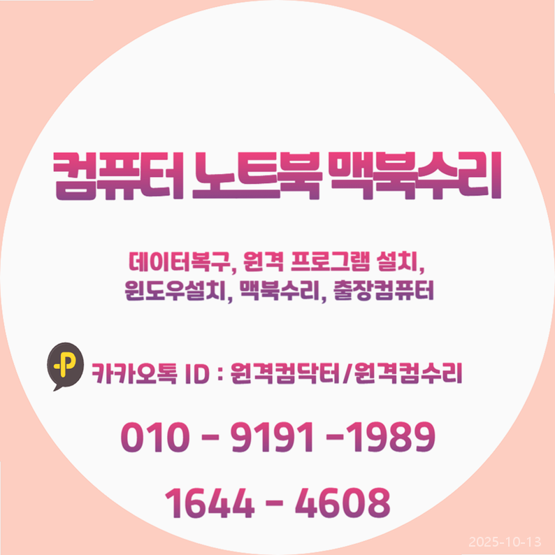 | 멈춘 일상, 빠르게 복구! 종로구 컴퓨터 노트북수리 윈도우설치, 오토캐드머신설치부터 원격 프로그램설치까지 전문가가 해결해드립니다! (0) | 2025.10.13 |