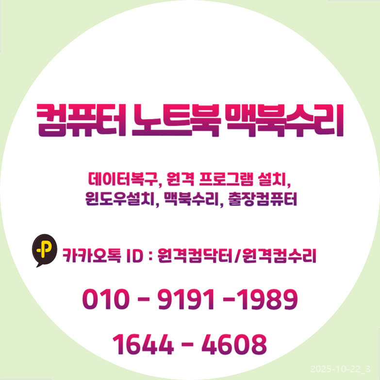 | 느려터진 컴퓨터, 당장 해결! 수원시 컴퓨터 노트북수리 윈도우설치부터 일러스트레이터 & 최신 프로그램 원격 설치 비법 대공개! (0) | 2025.10.21 |