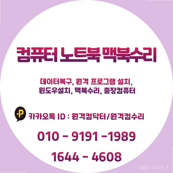 | 고양시 컴퓨터 노트북수리 윈도우설치, 정품 인증부터 원격 프로그램설치까지 한 번에 해결! (0) | 2025.10.23 |