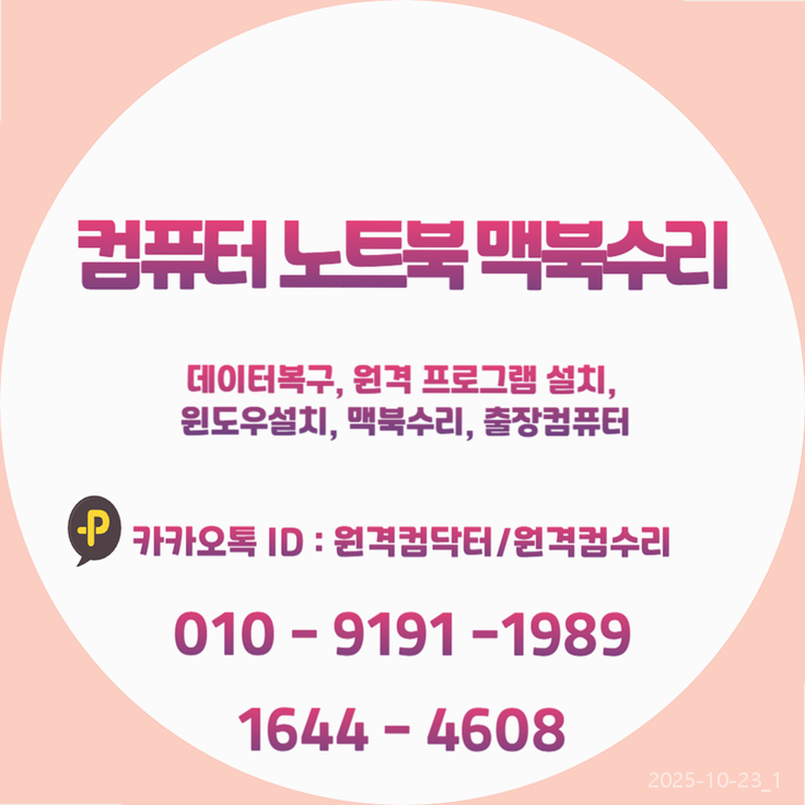 문의 및 상담: 010-9191-1989 카카오 채널 ID: 원격컴수리 (전화, 문자, 카카오톡 상담 가능합니다)