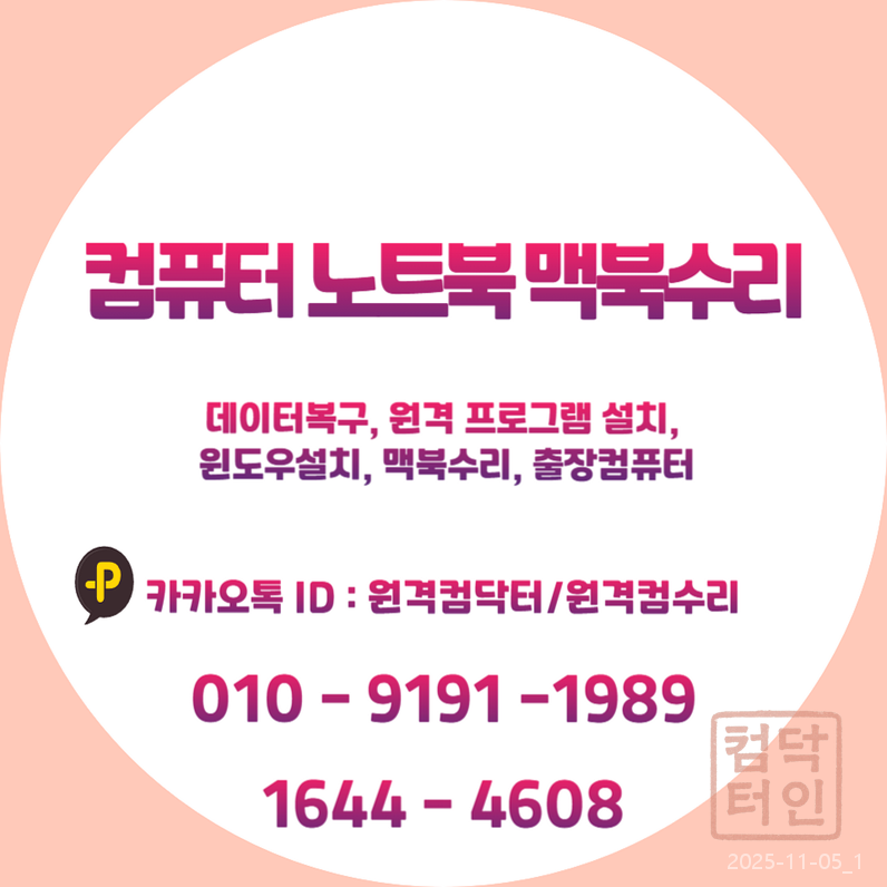 - 카카오톡 ID: 원격컴닥터 (또는 '원격컴수리' 검색!)