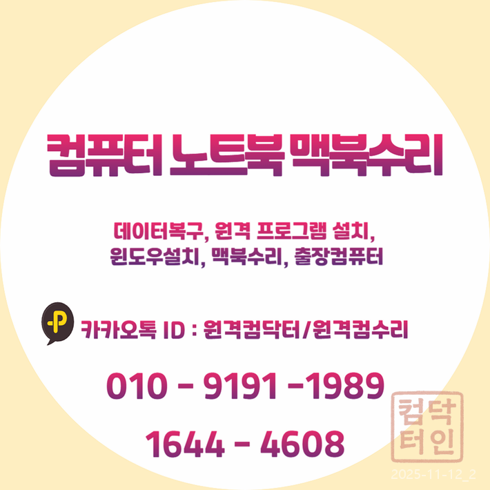 📱 카카오채널: 원격컴수리 (또는 원격컴닥터)를 검색해주세요!
