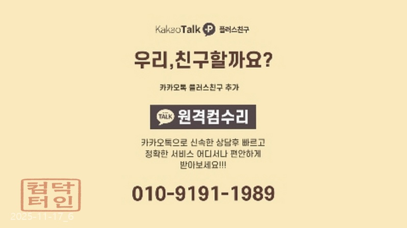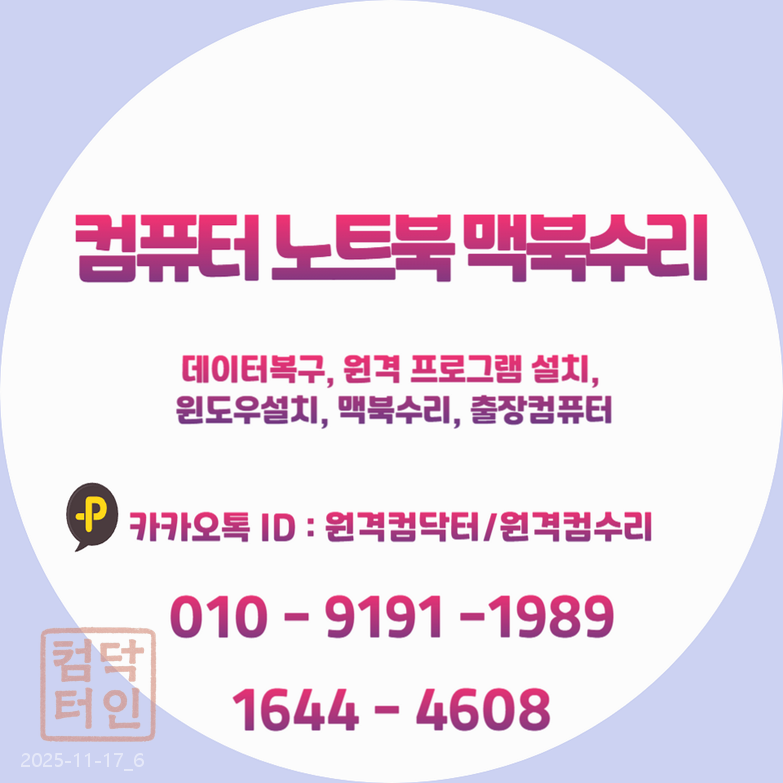 - 카카오채널 ID: 원격컴닥터 (또는 원격컴수리)