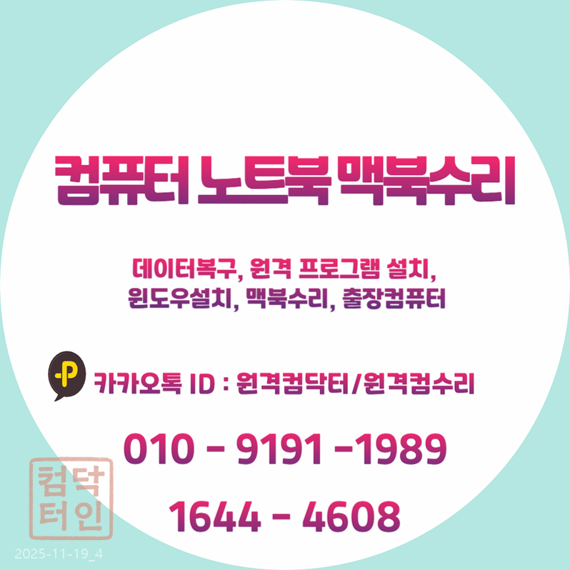 | 💻 광진구 포토샵설치, 스케치업설치도 OK! 긴급 출장컴퓨터 수리 & 저장장치복구(복원), 원격 프로그램 대행설치까지 완벽하게! 🚀 (0) | 2025.11.19 |