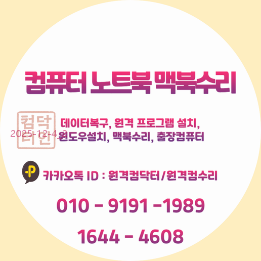 | 🌟 성남시 포토샵설치, 스케치업설치, 출장컴퓨터 고민 끝! 맥북수리 & 원격 프로그램 대행설치로 한번에 해결하세요! (0) | 2025.11.27 |