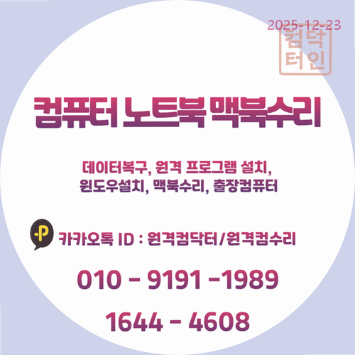 - 카카오톡 문의: 카카오채널 ID '원격컴수리' 또는 '원격컴닥터'