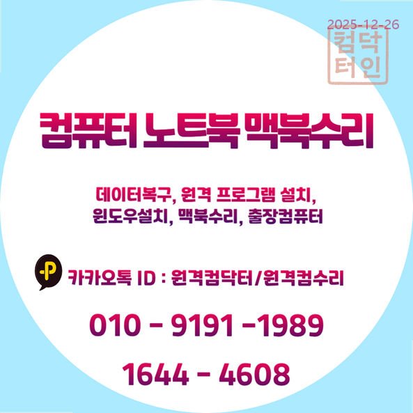 | 💻 영등포구 컴퓨터/노트북 수리: 맥미니부터 원격/출장 설치 전문가가 속 시원히 해결! 🚀 (0) | 2025.12.26 |