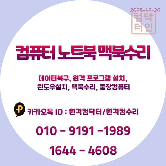 | 💻 영등포구 컴퓨터/노트북 수리: 맥미니부터 원격/출장 설치 전문가가 속 시원히 해결! 🚀 (0) | 2025.12.26 |