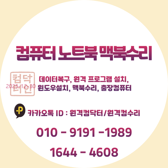 - 카카오톡 문의: 카카오채널 '원격컴수리' 또는 '원격컴닥터' 검색