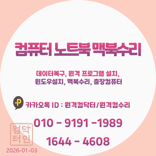본 포스팅은 컴닥터의 서비스 소개 및 컴퓨터 관련 서비스에 대한 안내를 목적으로 하며, 실제 서비스 내용 및 가격은 변동될 수 있습니다.