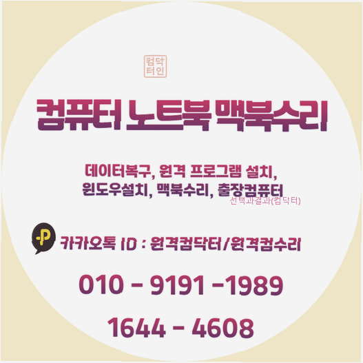 출장 컴퓨터수리 원격 노트북 맥북 아이맥 맥미니 M1~M5 각종 윈도우및 맥Mac 프로그램설치 전문
